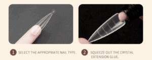 Application to Nail: Press the polygel-coated dual form onto your natural nail, pressing firmly to avoid air bubbles .